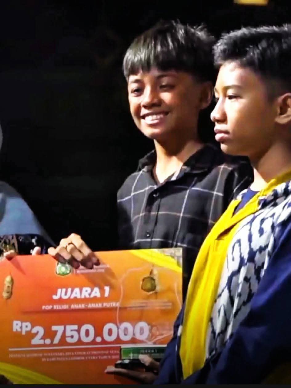 M. Rabianto siswa SMPN 4 Kota Bima berhasil meraih juara 1 pada lomba LASQI cabang lomba pop religi