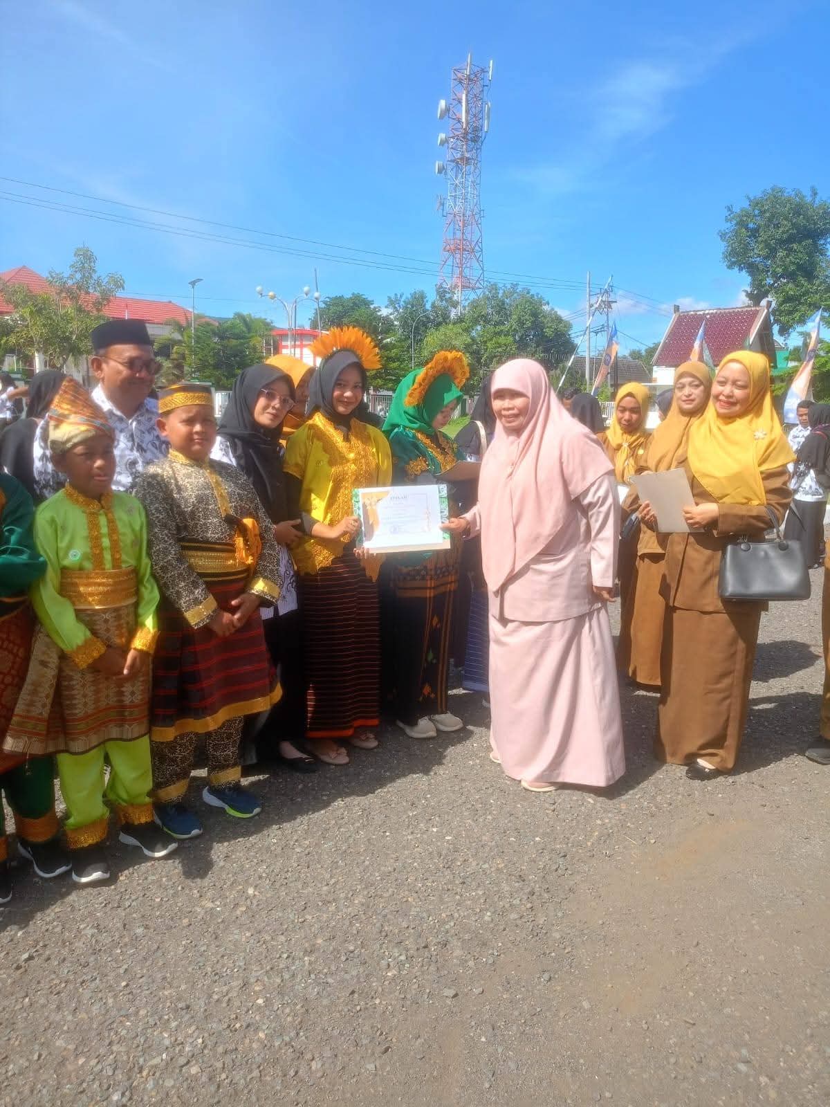 Khusnul Afiqah Putri juara 2 Lomba Mendongeng Bahasa Mbojo mendapatkan piagam penghargaan di Kantor walikota Bima