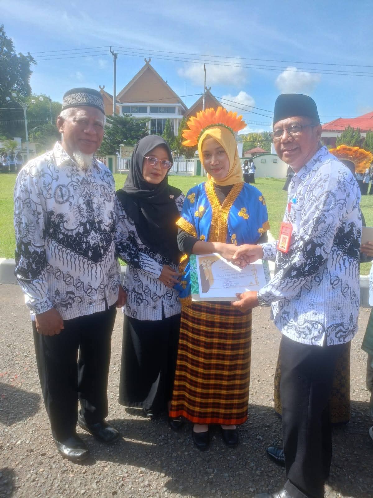 Nurinayah juara 2 Lomba Menulis cerpen Bahasa Mbojo mendapatkan piagam penghargaan di Kantor walikota Bima