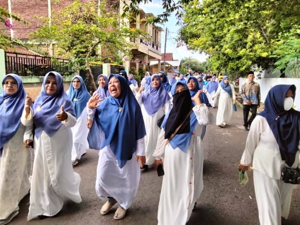 GURU SMPN 4 KOTA BIMA ANTUSIAS MEMERIAHKAN PAWAI TAARUF MTQ KE-18 TINGKAT KOTA BIMA