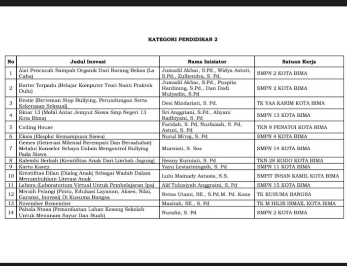 SMPN 4 Kota Bima lolos tahap selanjutnya dalam lomba inovasi Tk. Kota Bima.